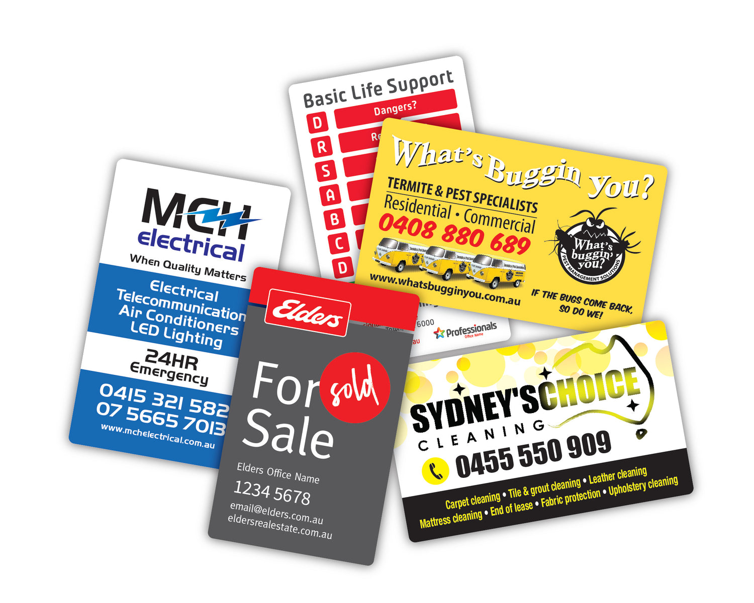 Our business card magnets are made using our standard commercial grade magnet and finished with a gloss laminate to ensure longevity. Cheap as chips.
